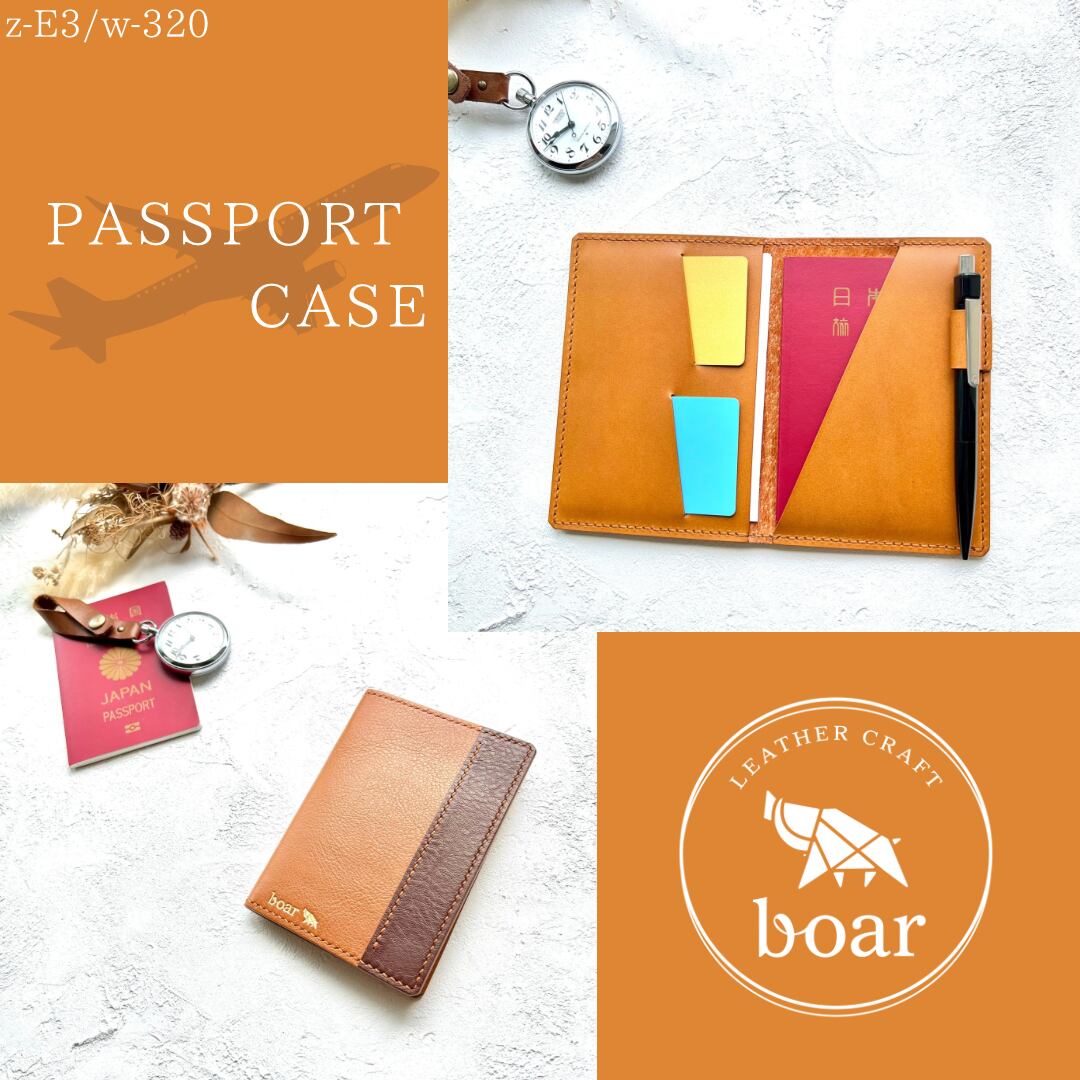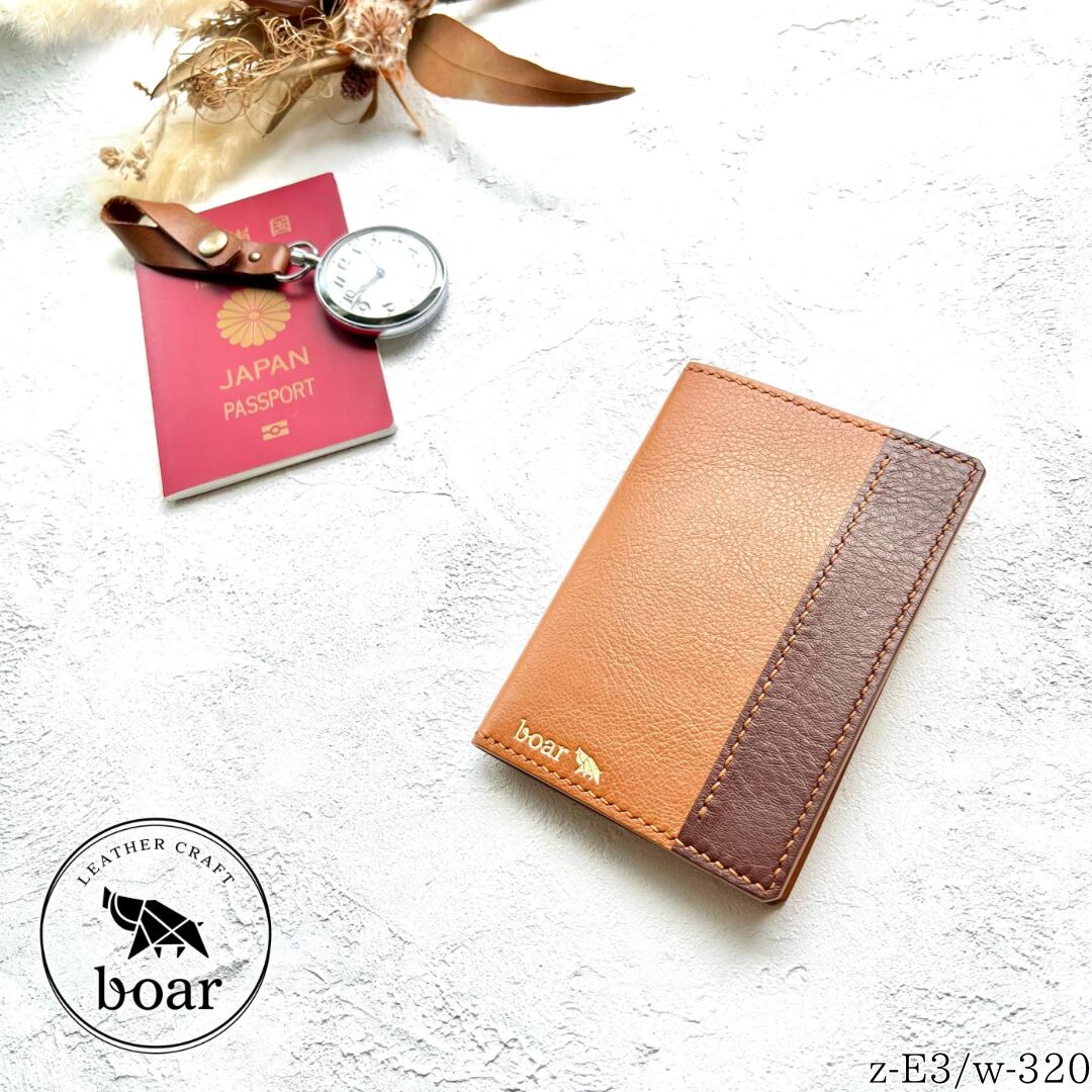 【パスポートケース キャメル×ブラウン 品番:z-E3/w-320】