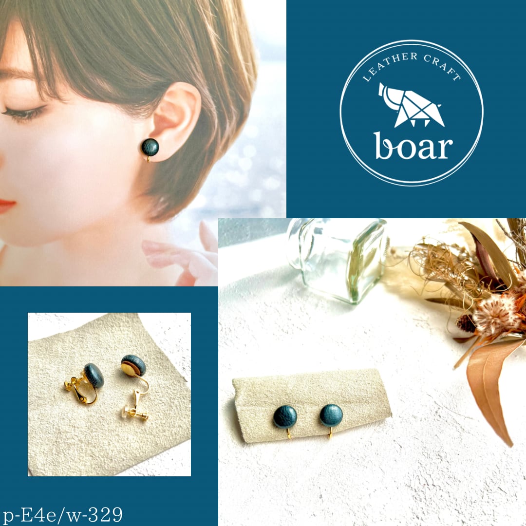 イヤリング(ニッケルフリー) ネイビー(メタリックカラー) 品番:p-3/w-329